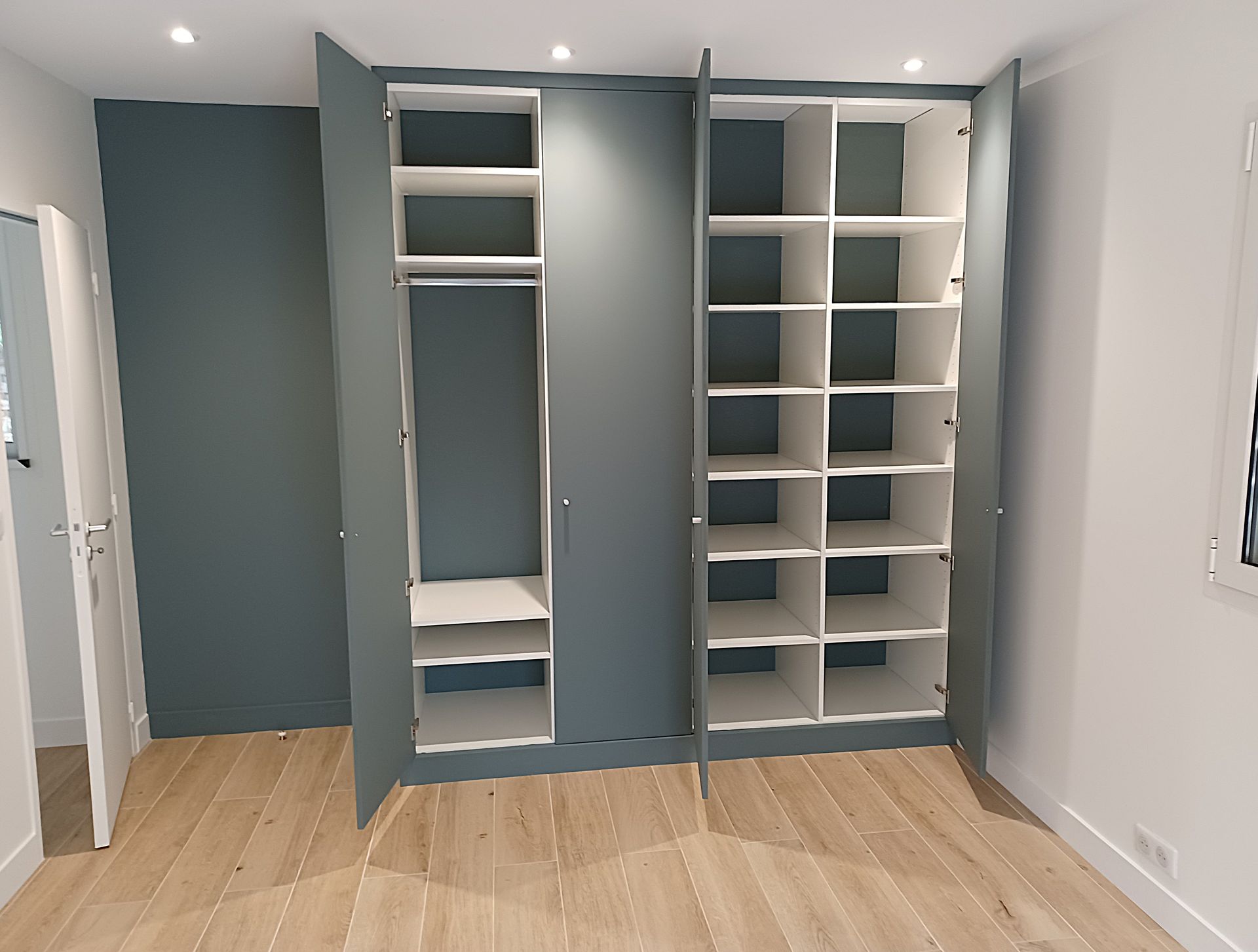 Nous réalisons tous types de dressings et placards : en L, en U, linéaires, d’angle, sous pente, ouverts ou fermés. Petits espaces, chambres parentales, couloirs ou pièces spéciales : chaque configuration est possible.