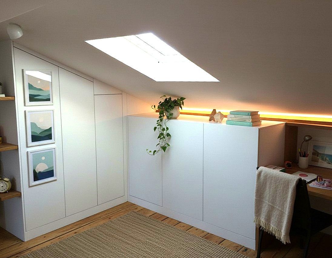 Nous intervenons dans les zones difficiles : sous escaliers, combles, angles, niches, renfoncements… Chaque meuble est conçu au millimètre près pour s’adapter à la configuration.