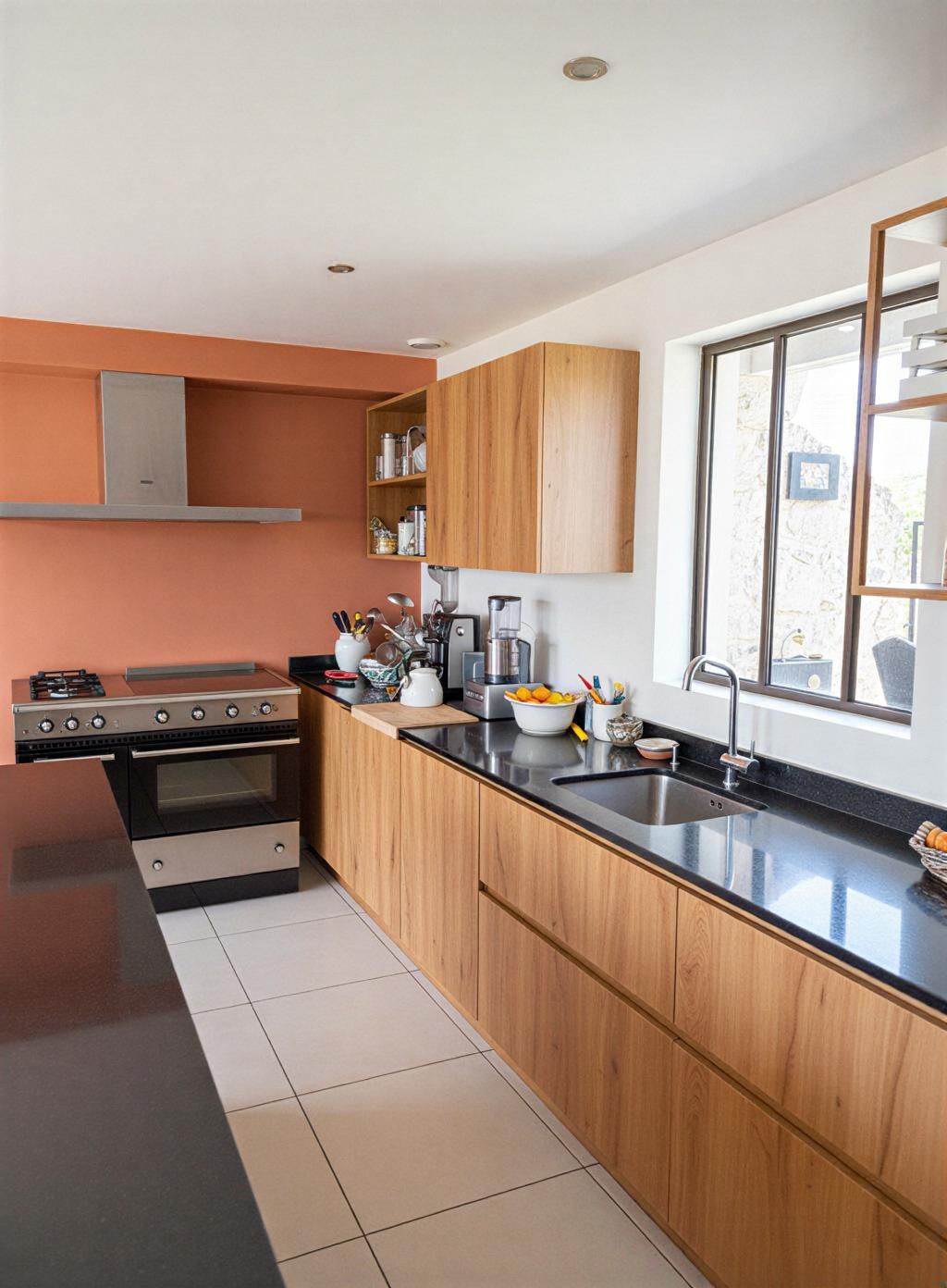 Choisissez des surfaces résistantes aux rayures comme le granit ou le Dekton. Utilisez des planches à découper et nettoyez-les à l’aide de produits doux pour préserver l’aspect du matériau.